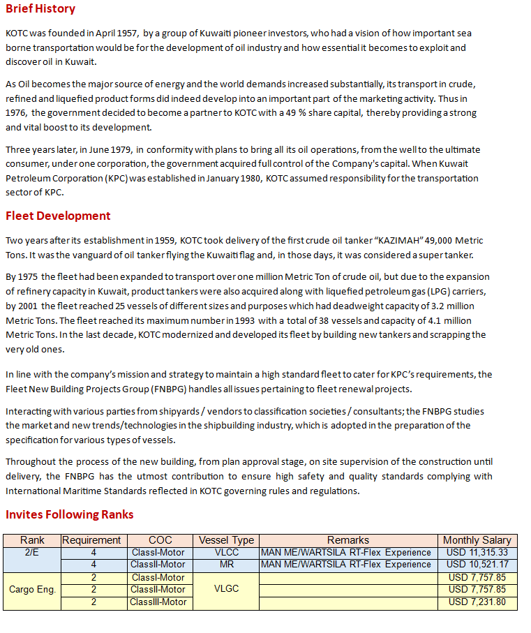 Please write "FOR SUEZMAX OIL TANKER" in subject line when applying.
