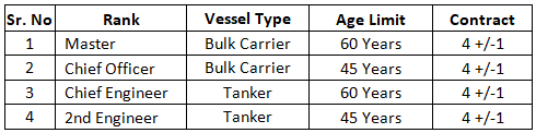 3. Masters and Chief Engineers have to be younger than 60 years old.