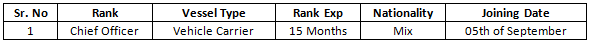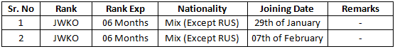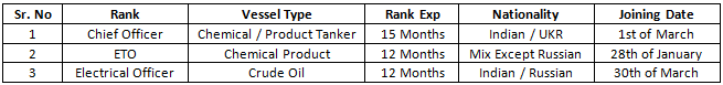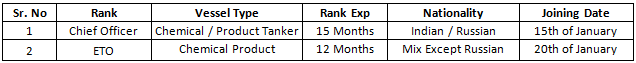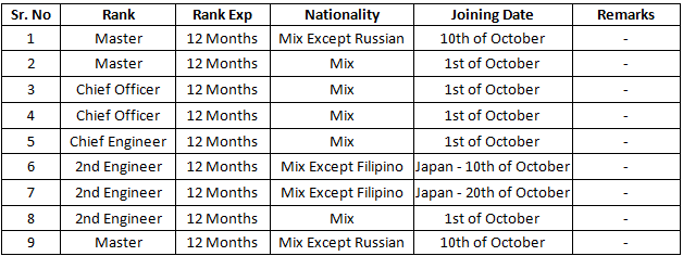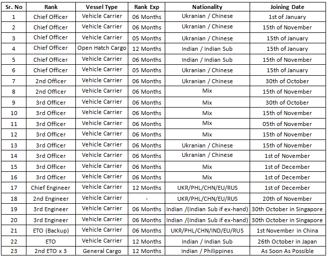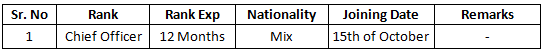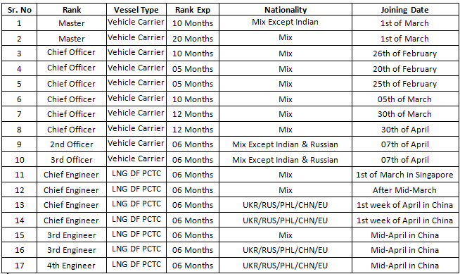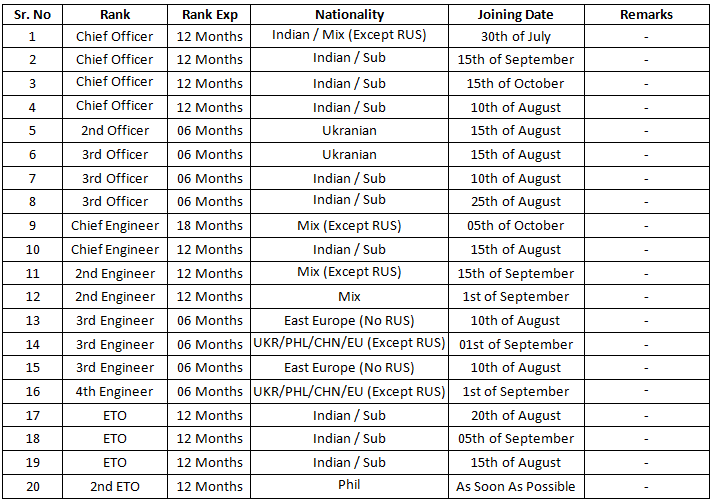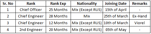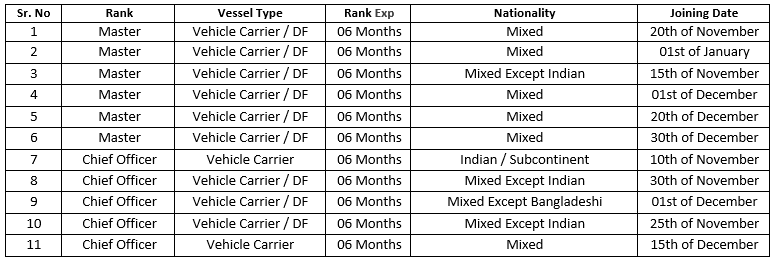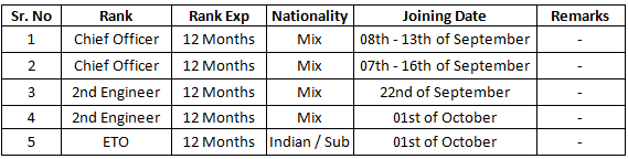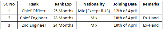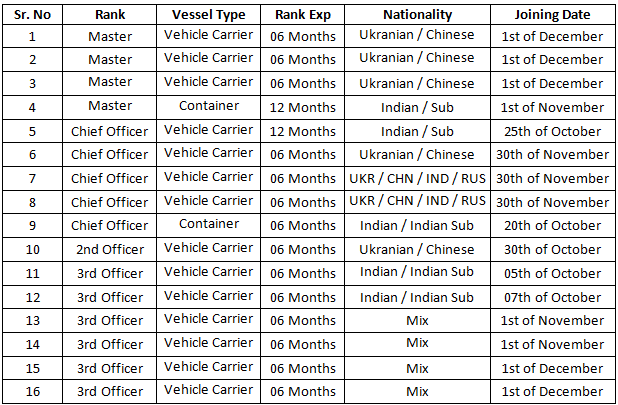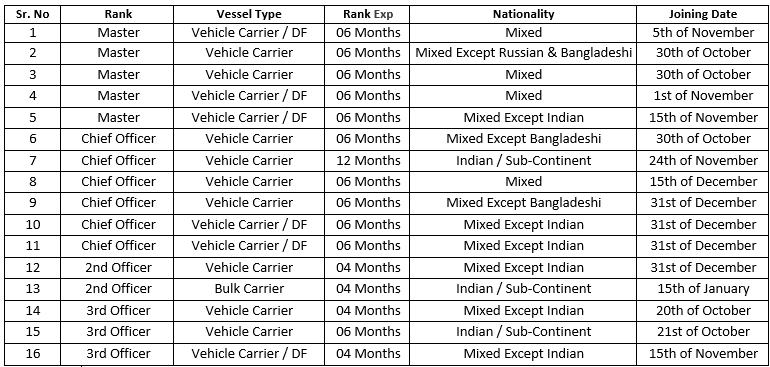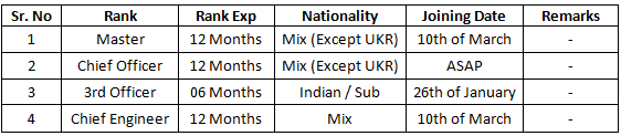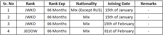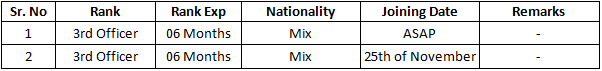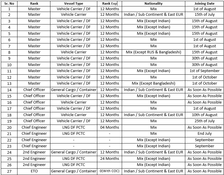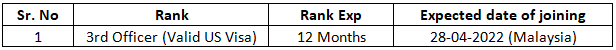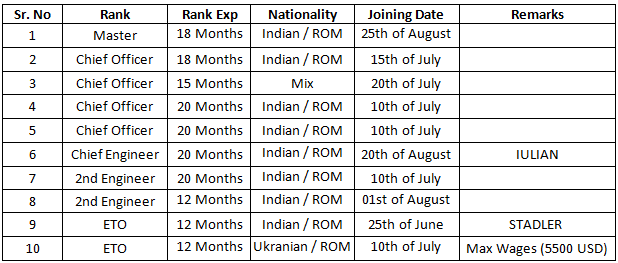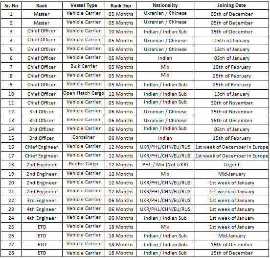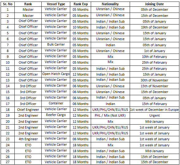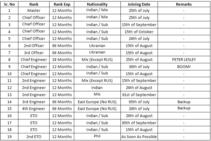 5. MT ANGLEVIKEN : Joining in January, 2018. Minimum 33 months rank experience. Should be East European.