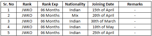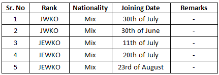 2. MT CHALLENGE PERAL : Joining around End October, 2017. Minimum 30 months rank experience.