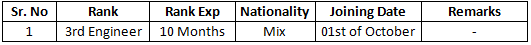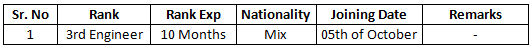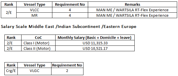 Urgently required 4th Engineer and ETO for Cement Carrier. Fresh COC holders can also apply.
