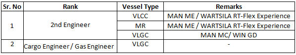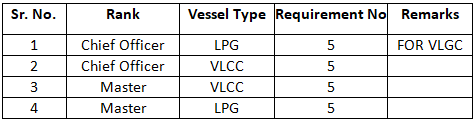 Urgently required following Sea Staff for NITC Gas Carrier. Ex-NITC Sea Staff would be preferred.