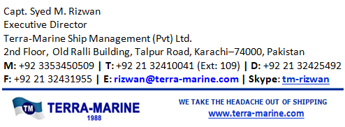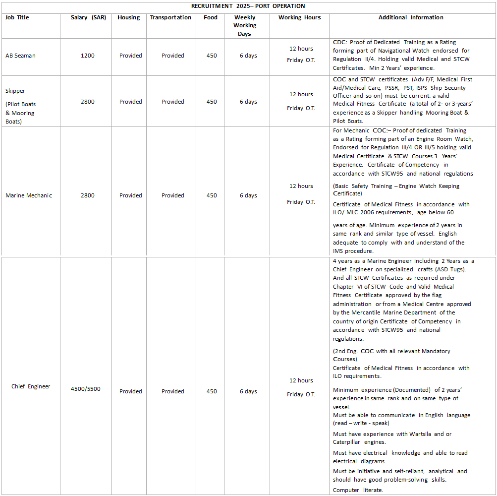 Urgently required Masters and Chief Engineers holding COC (Class II) for Tugs in Saudia Arabia. Interested candidates please apply to shazia@terra-marine.com. TMA application form (Short Form CV) can be downloaded from our website: