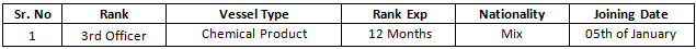 4. MT+ HAFNIA PHOENIX : Chemical tanker joining in December, 2017. Minimum 25 months rank experience.