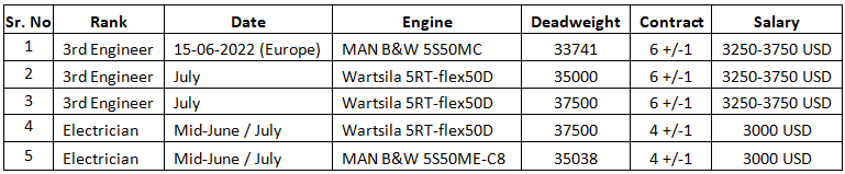 Nordic Hamburg urgently requires the following ranks for Bulker Vessels. Joining around 5th June, 2022.