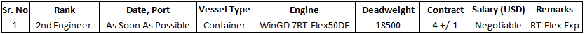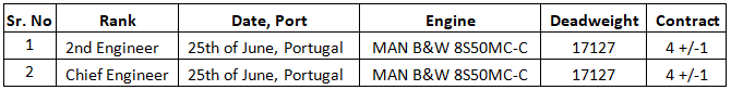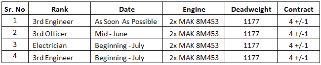 1. 2nd Engineer (+1/-1 Month of O6 Months Contract)