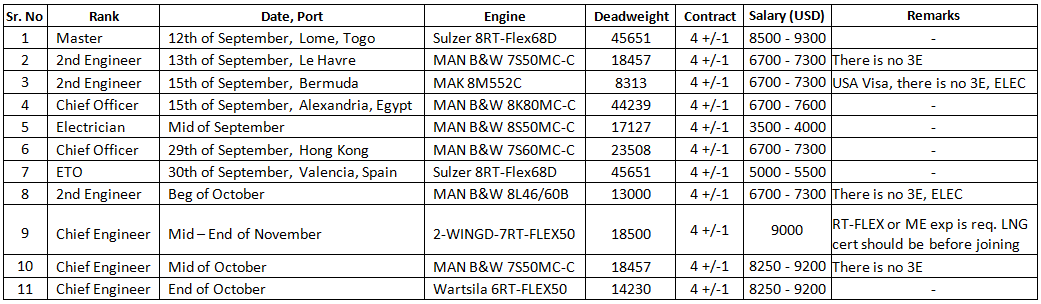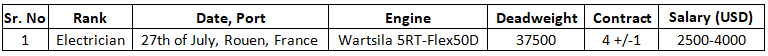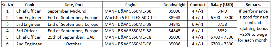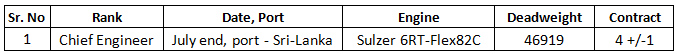 Candidate must have same Rank experienced on electronically controlled engine (SULZER RT FLEX, MAN - B&W ME Engine).