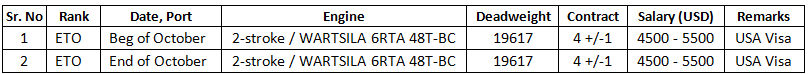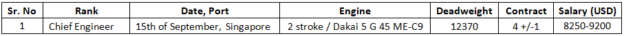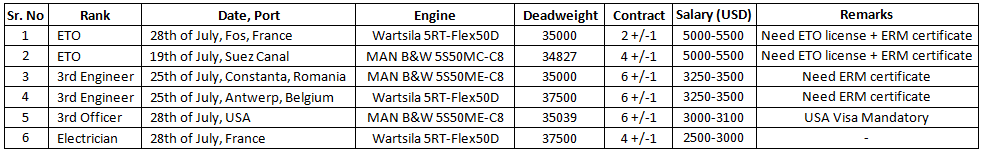 Chief Engineer, 2nd Engineer, 4th Engineer, ETO, Wiper, Fitter