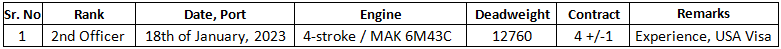 2. 2nd Officer (+1/-1 Month of 08 Months Contract)
